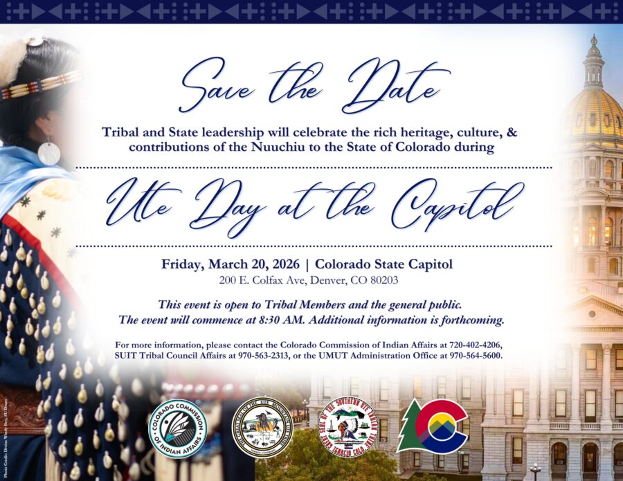Tribal and State leadership will celebrate the rich heritage, culture, and contributions of the Nuuchiu to the State of Colorado during Ute Day at the Capitol on Friday, March 20, 2026, in Denver, Colorado at the State Capitol in the West Foyer (200 E. Colfax Ave).