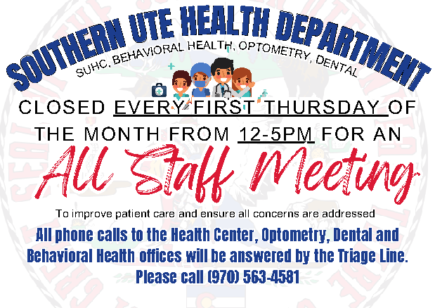 SUHC CLOSED ALL AFTERNOON – 1ST THURSDAY OF EACH MONTH