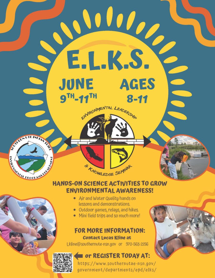ELKS is a program created by the Southern Ute Indian Tribe’s Environmental Programs Department (EPD). ELKS will educate young tribal members of the community so they will know how important the environment is and how the Tribe’s EPD is protecting the environment. Educating the youth on the importance of the environment is crucial to the longevity and sustainability of our natural resources just as Leonard C. Burch advocated for the SUIT’s water rights with the Animas-La Plata Project.